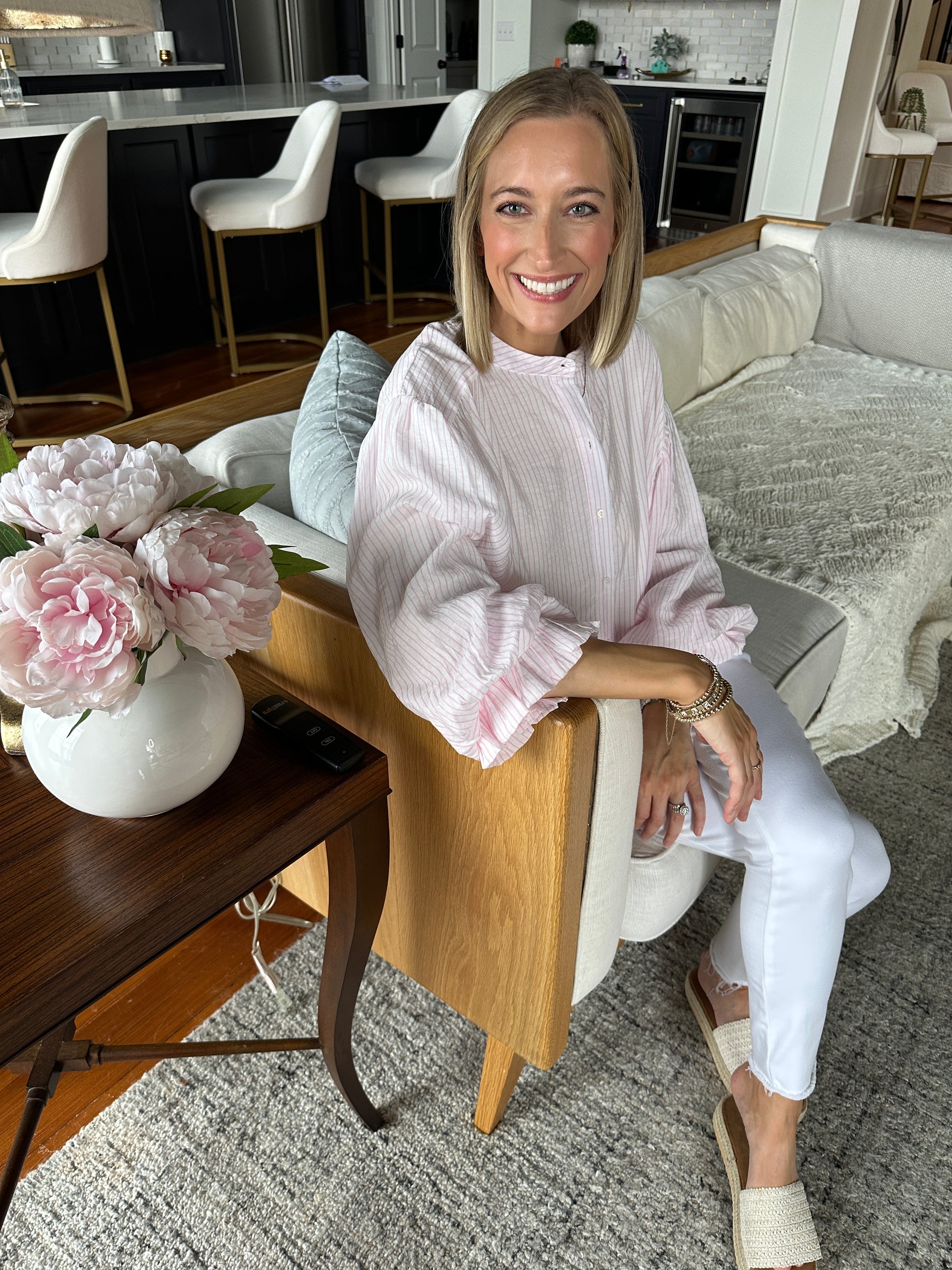 STRIPE TENCEL BLEND BUBBLE SLV BLOUSE