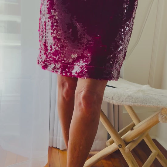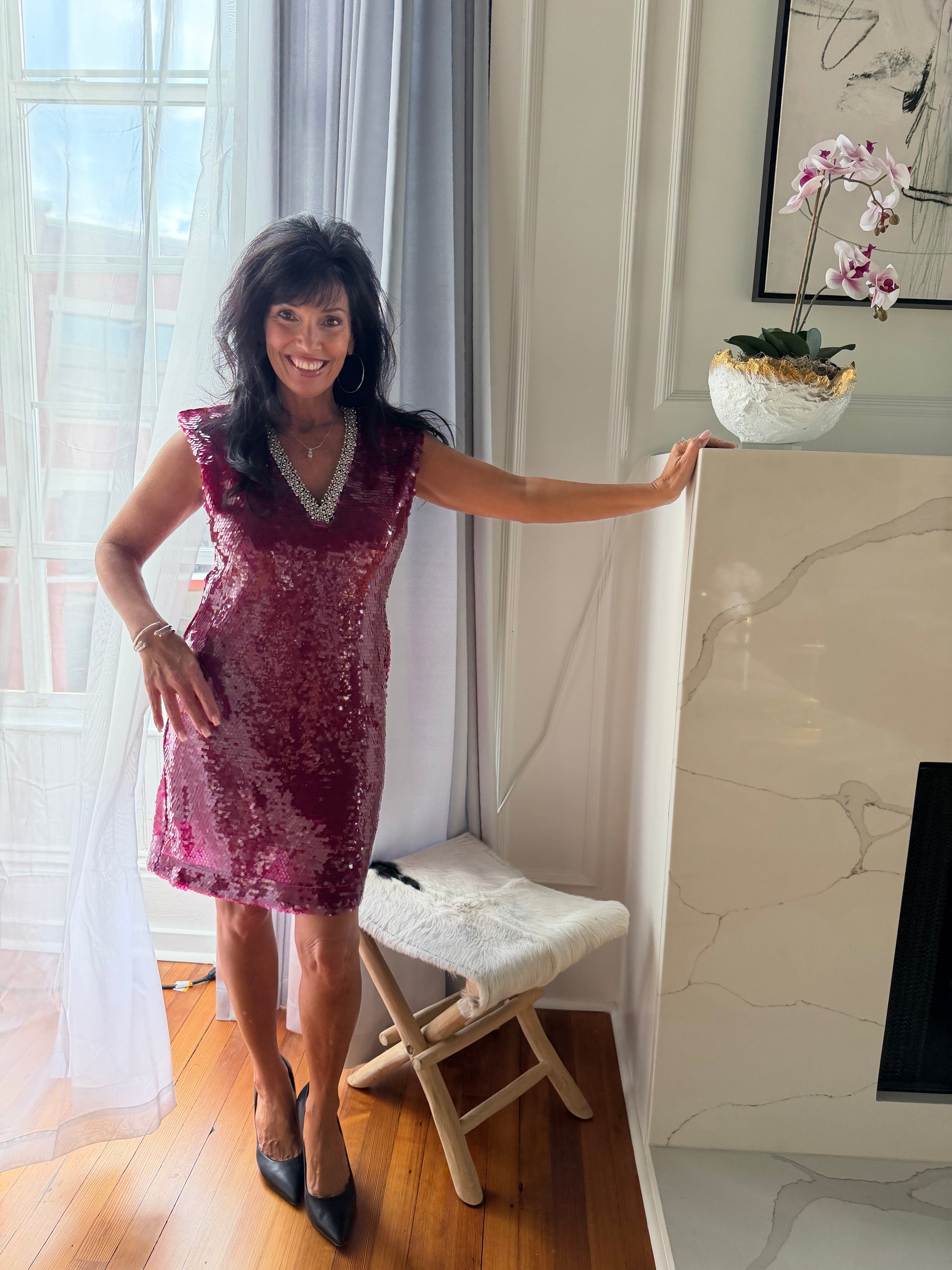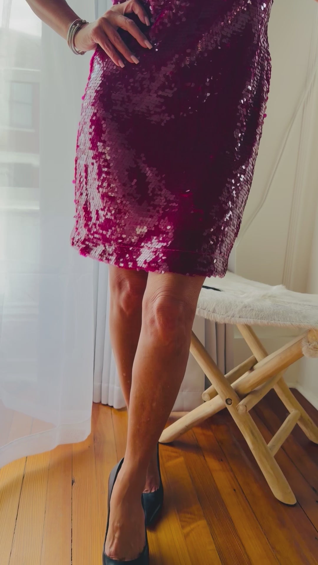 Turn every head in our Barbie After Dark Sequin Dress! Drenched in glistening pink sequins that shimmer with every move, this dazzling mini radiates pure confidence and glam. The deep V-neckline, framed with crystal embellishments, adds the perfect touch of sparkle and sophistication.