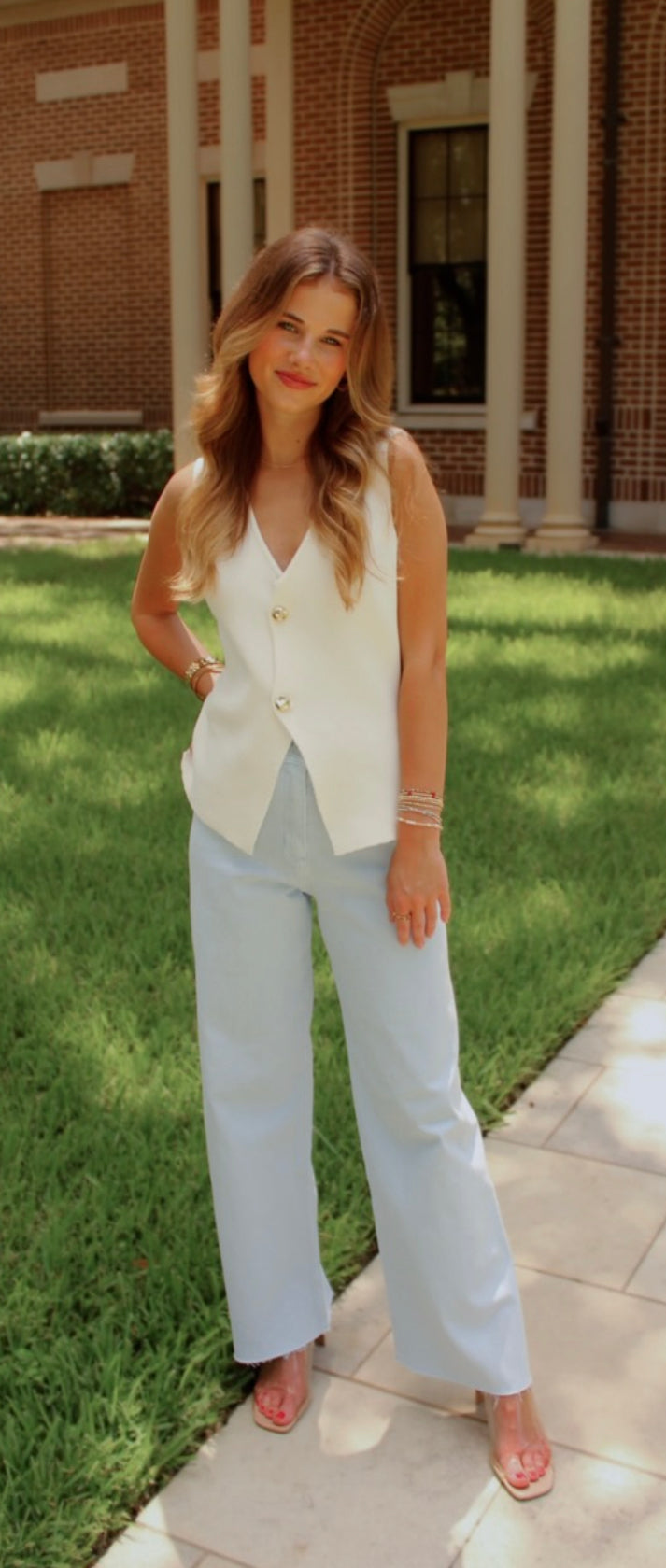 These wide leg, straight denim jeans are so cute and stylish with the high waist and wide frayed hem. The stretch makes for a comfortable fit