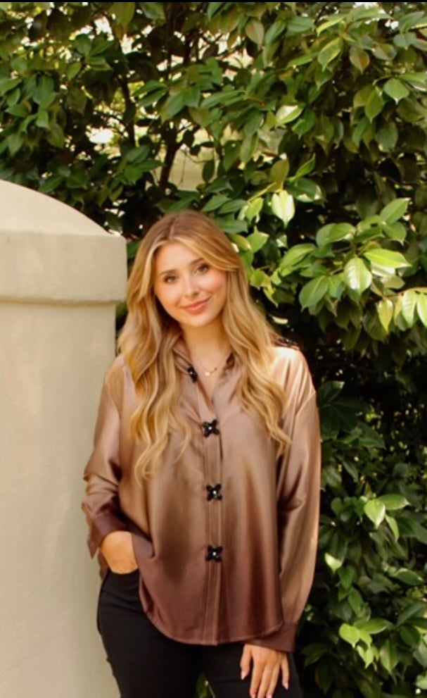 This stunning brown ombre satin blouse is all about elegance with a modern twist.
