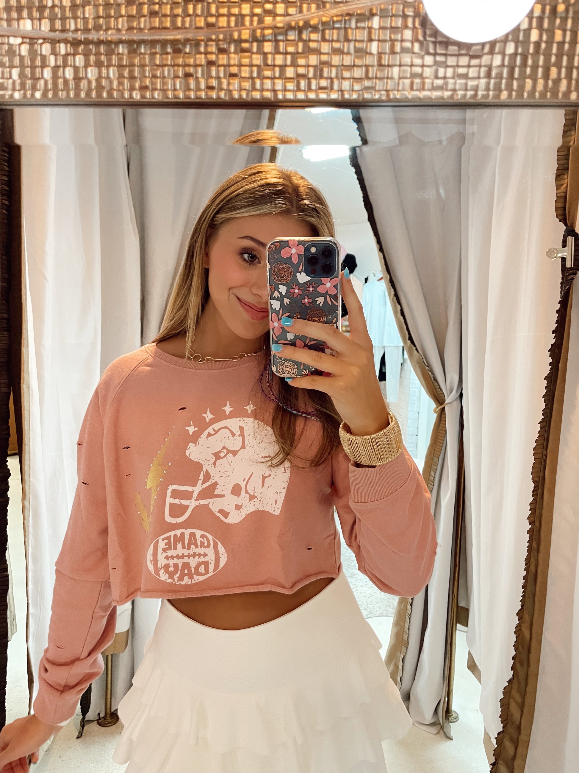 French Terry Crop Game Day Studded Graphic Sweatshirt