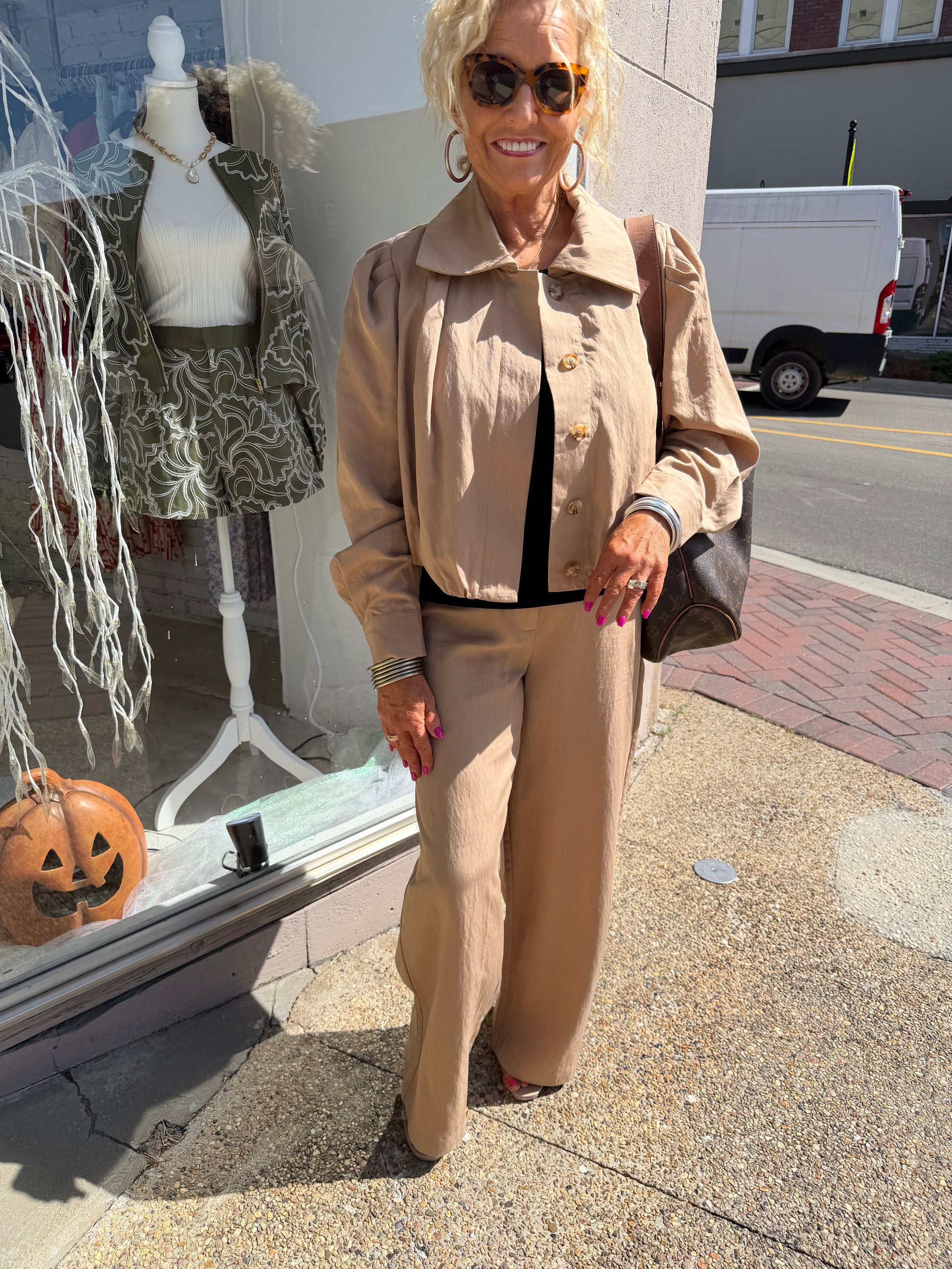 The Craving Caramel Pants are the perfect blend of relaxed comfort and timeless style. Designed with a high-rise elastic waist for an easy fit and a straight-leg silhouette, these pants deliver effortless polish without sacrificing comfort. The warm, neutral shade makes them endlessly versatile—pair with a crisp blouse for the office, a casual tee for everyday wear, or the matching jacket for a chic coordinated set.