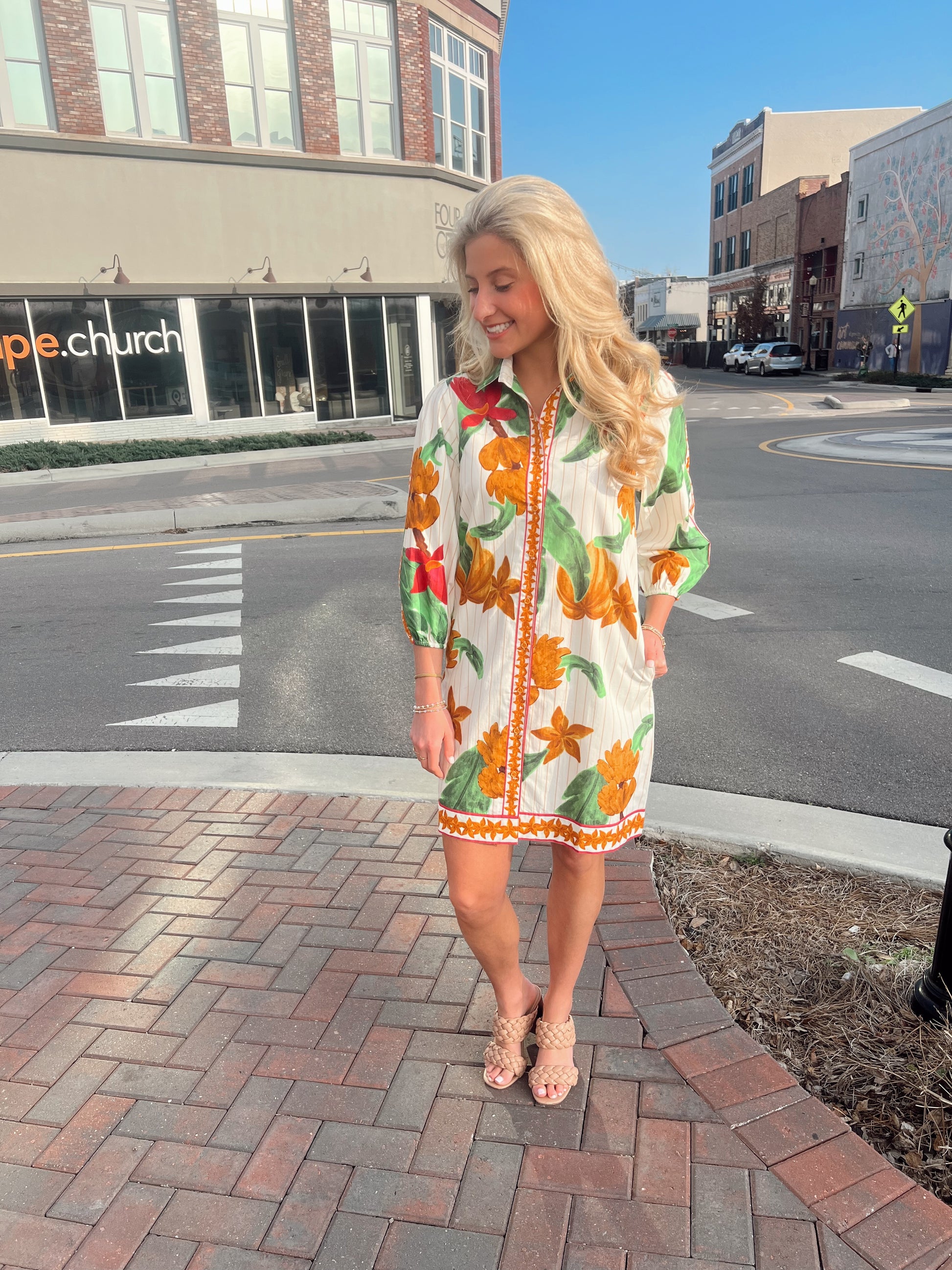 This is our Premium Cotton Dresses in a beautiful bright color combination.This button up shirt dress is a fun ,easy and comfortable look. You can dress this up or down. Perfect for your next vacation or shopping with the girls.