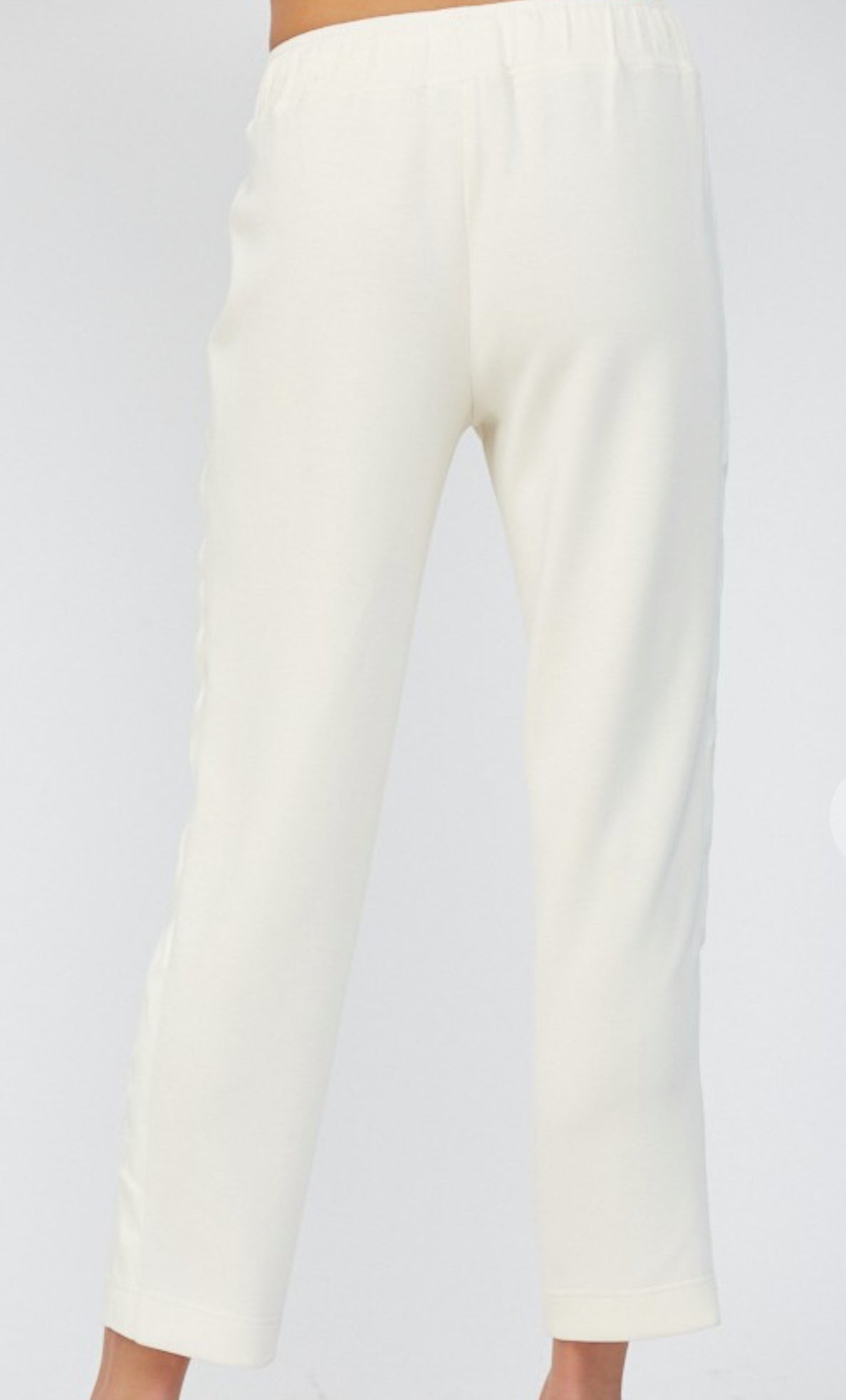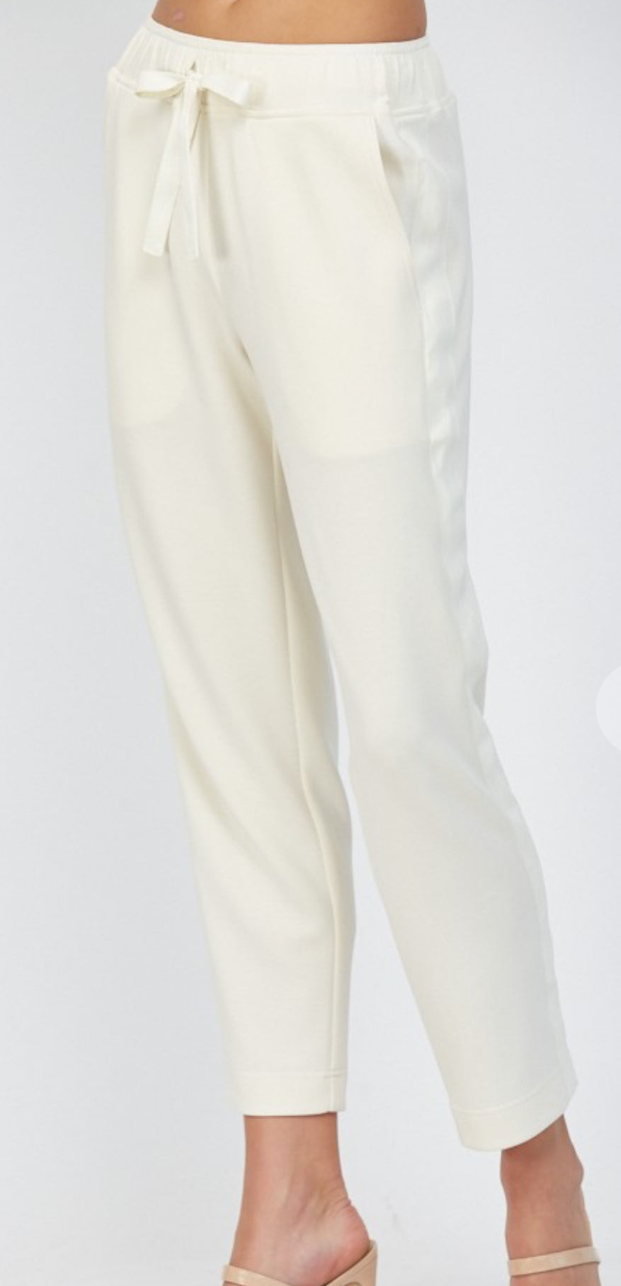 These are so comfy and dreamy in the soft material with elastic drawstring waist and they do have pockets. They are an ankle length.