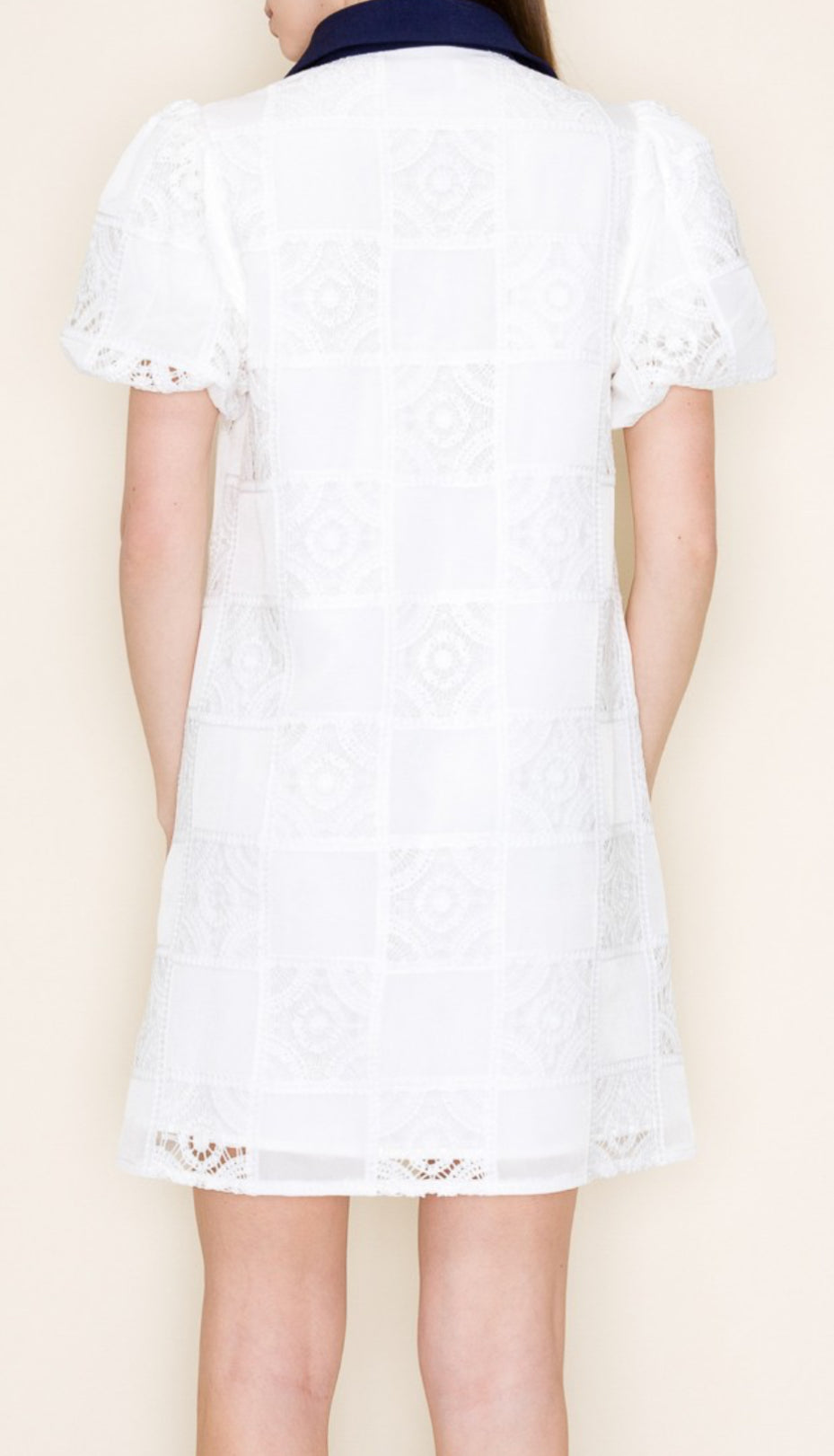 The perfect way to dress up ypur casual shirt dress is to add some puff sleeves and embroidery. This is a fabulous combination with a contrast collar….. excellent combination.
