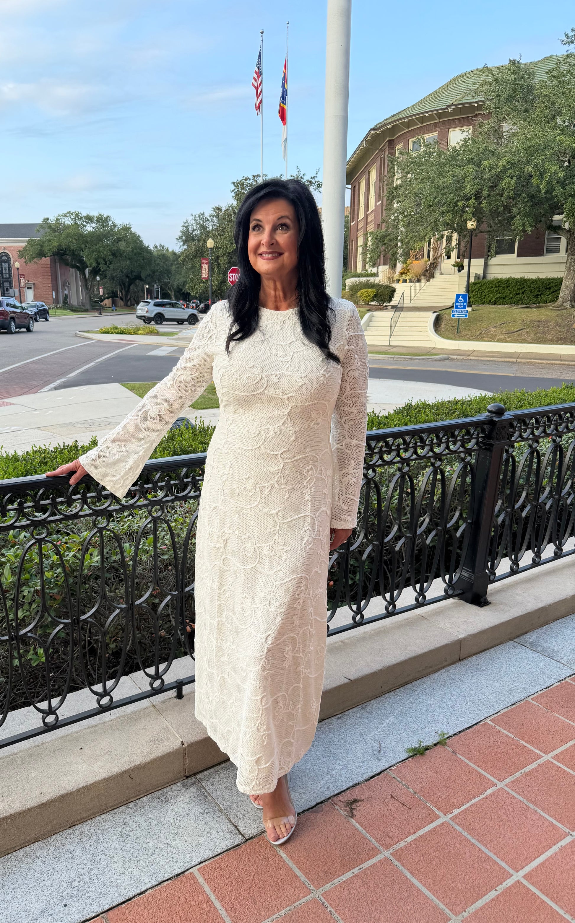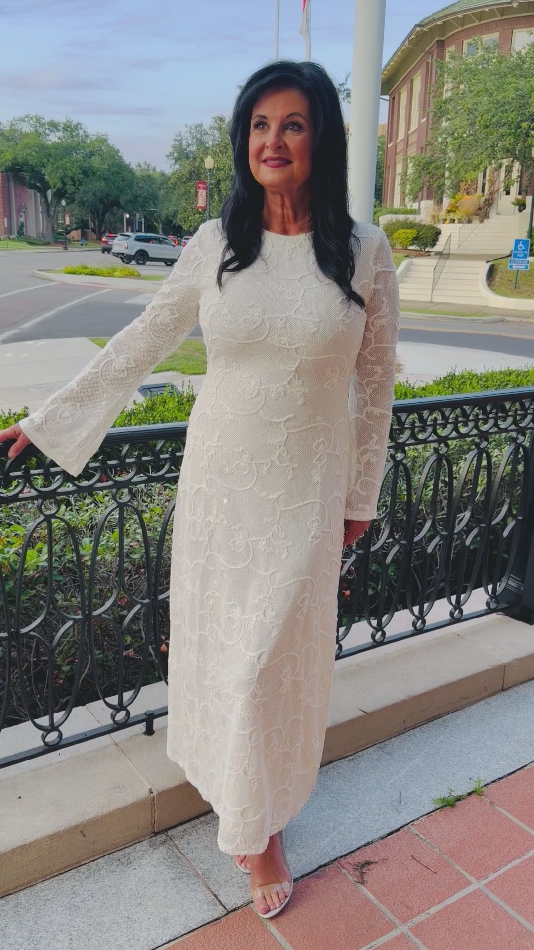 The Eternal Grace Lace Dress is where vintage romance meets modern sophistication. Designed in a soft ivory hue, this long-sleeve beauty features delicate embroidered lace over a smooth satin lining for a look that’s effortlessly refined. Subtle shimmer catches the light as you move, making it perfect for winter soirées, rehearsal dinners, or any occasion where you want to feel simply unforgettable. With its classic silhouette and graceful details, this dress embodies elegance that never goes out of style.