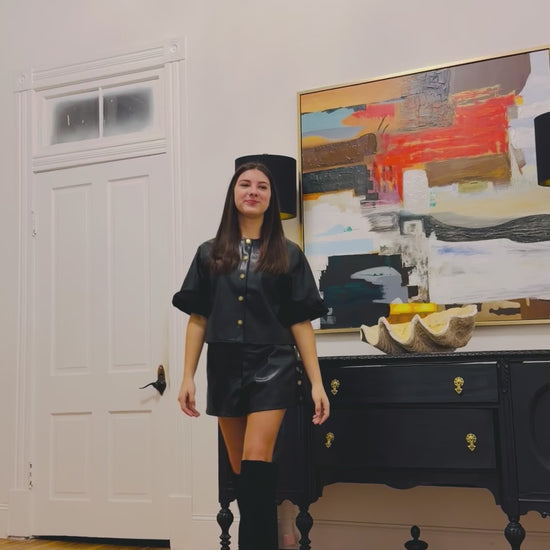 Step up your style game with the Feminine &Flirty Faux Leather Shorts. Crafted from buttery-soft black faux leather, these high-waisted shorts feature statement gold button accents and tailored seam detailing for a polished yet edgy finish. The structured fit and subtle flare create a flattering silhouette that transitions effortlessly from day to night. Pair them with a tucked-in blouse, a cropped sweater, or the matching Downtown Edge Jacket for the ultimate coordinated look.