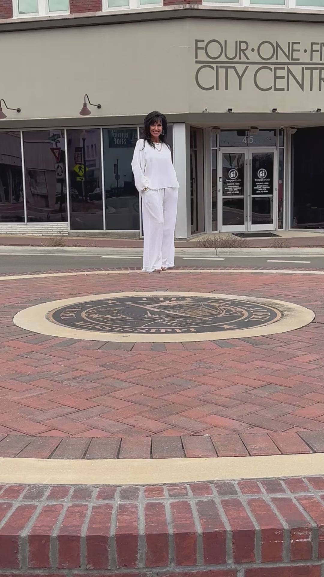 This is a great oversized look with 3/4 length sleeves and a boxy bottom.it neck is a round neck.