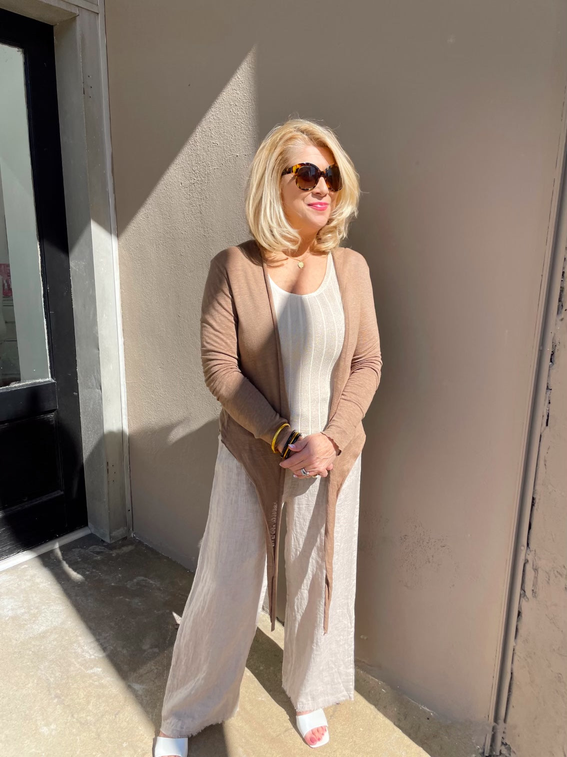 These are our Classic Linen Drawstring Pants. They are definitely a Best seller and a must have in the original linen color with wide leg . A staple for summer.