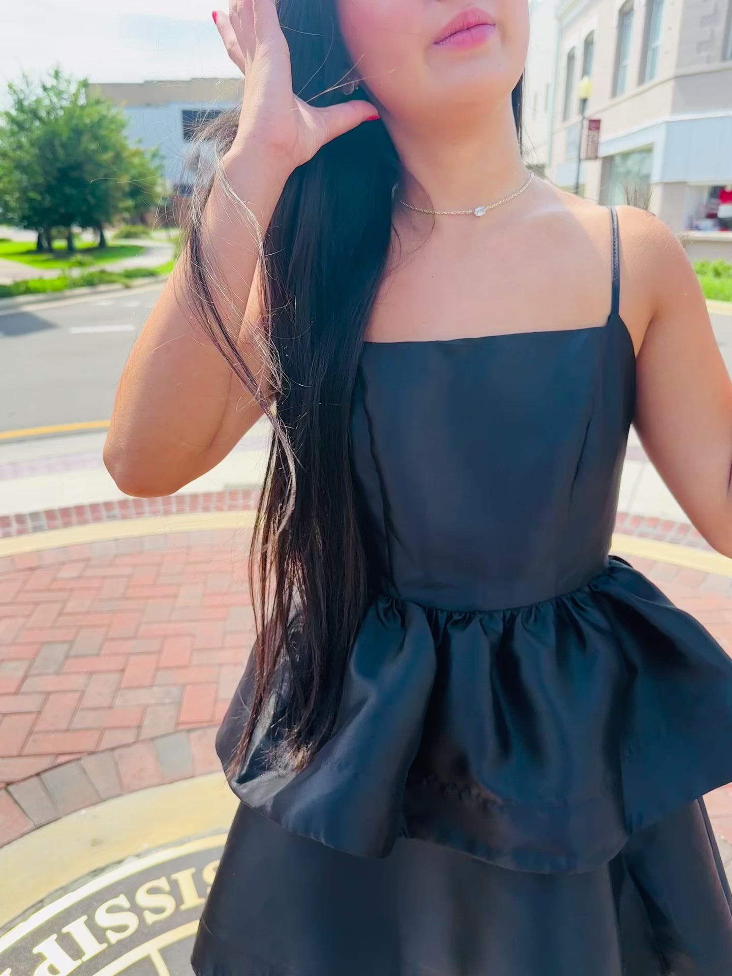 Sleek, sultry, and oh-so-chic — this black satin mini dress is pure showstopper energy. With its flattering fitted bodice, delicate spaghetti straps, and a playful double-tiered ruffle hem, it hugs in all the right places while adding movement and flair. The soft satin sheen catches the light just right, making it perfect for cocktail parties, weddings, or any night you want to steal the spotlight.