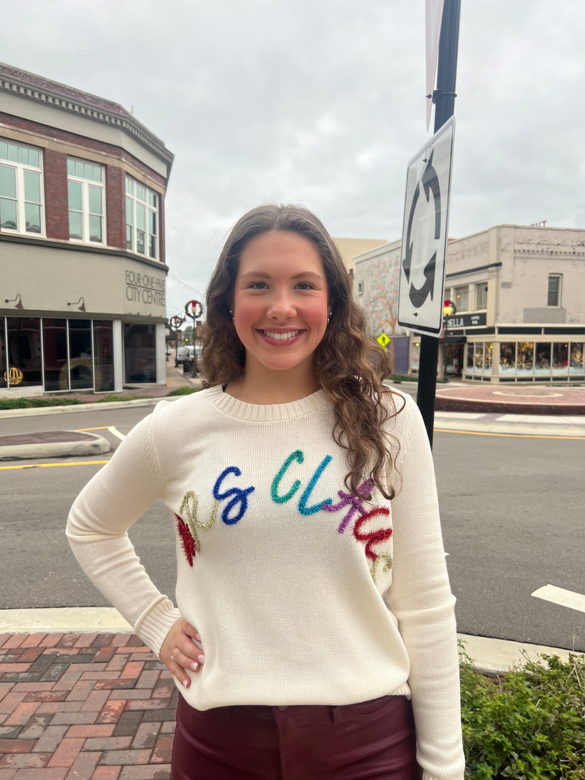 This is so cute and. Olorful!!! For all you Ms Clauses out there this is a perfect sweater for you Christmas pics.
