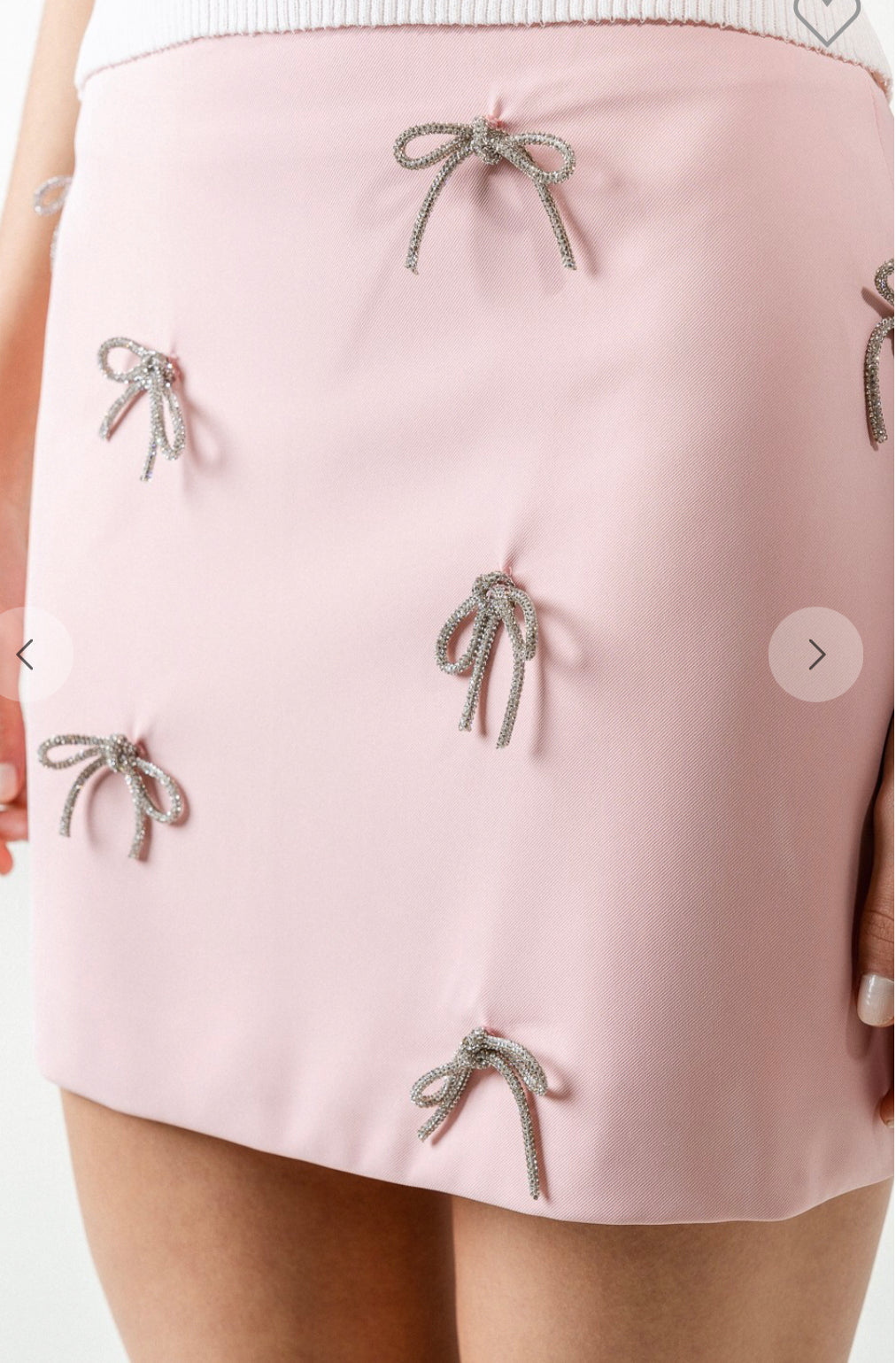 The cutest mini skirt has arrived here at Two A Tee & Co….. A light pink mini with scattered rhinestones bows…. Super Cute