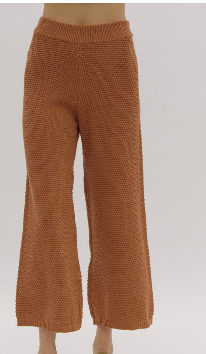 These wide leg pants are so comfortable made in a sweater material with elastic waist band. This is a 2 piece set each piece sold separate.