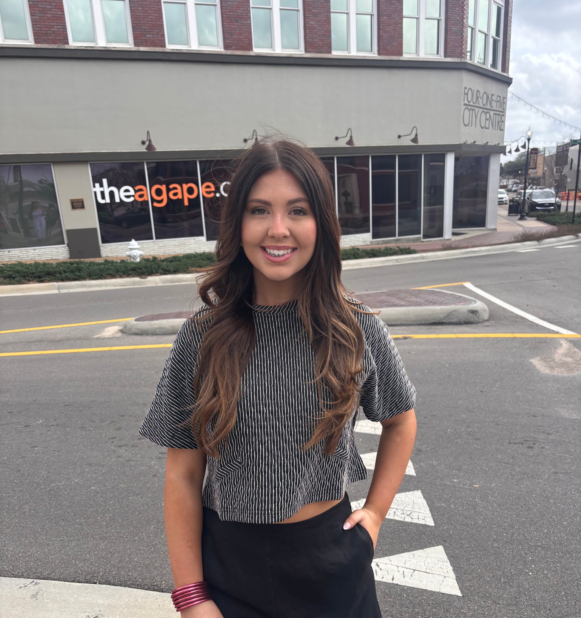 This is a cute boxy type top .Black with a small white stripe and it has slit pockets on the side. Short sleeve with a round neckline.