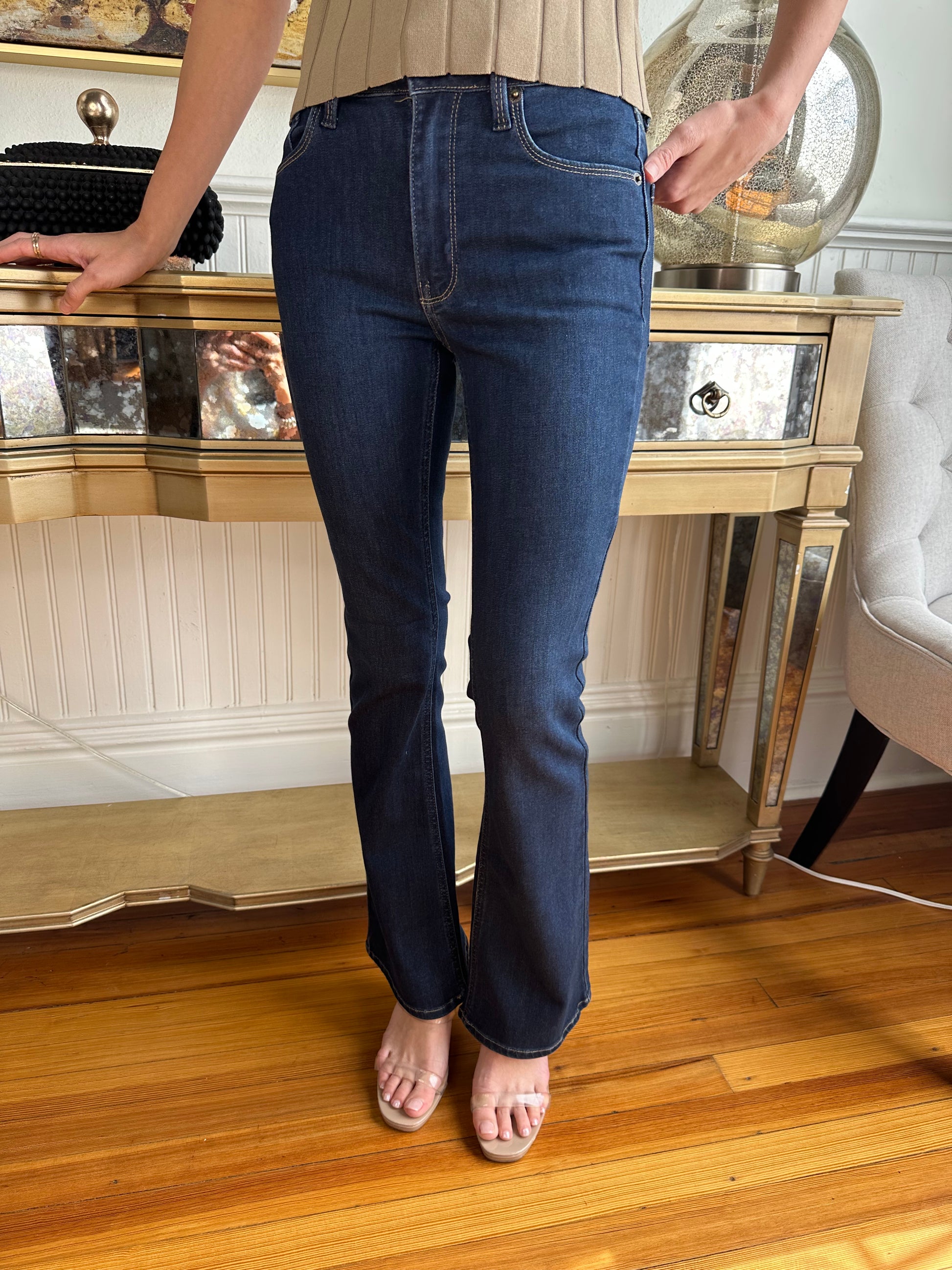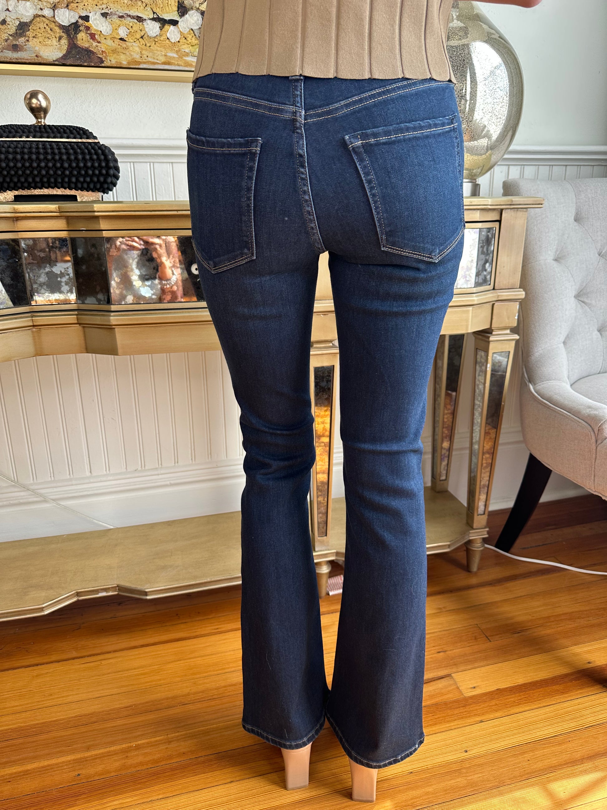 These jeans are a best all around look and fit. The dark denim is a classic and timeless look. The slim bootcut is so figure flattering. They can be worn dressy or casual.