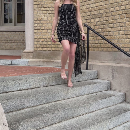 This strapless mini dress is designed to hug you in all the right places while still feeling soft and effortless. The sleek, structured bodice gives you that smooth, flattering fit, while the gathered side detail and dramatic draped sash add just the right amount of movement and sass.