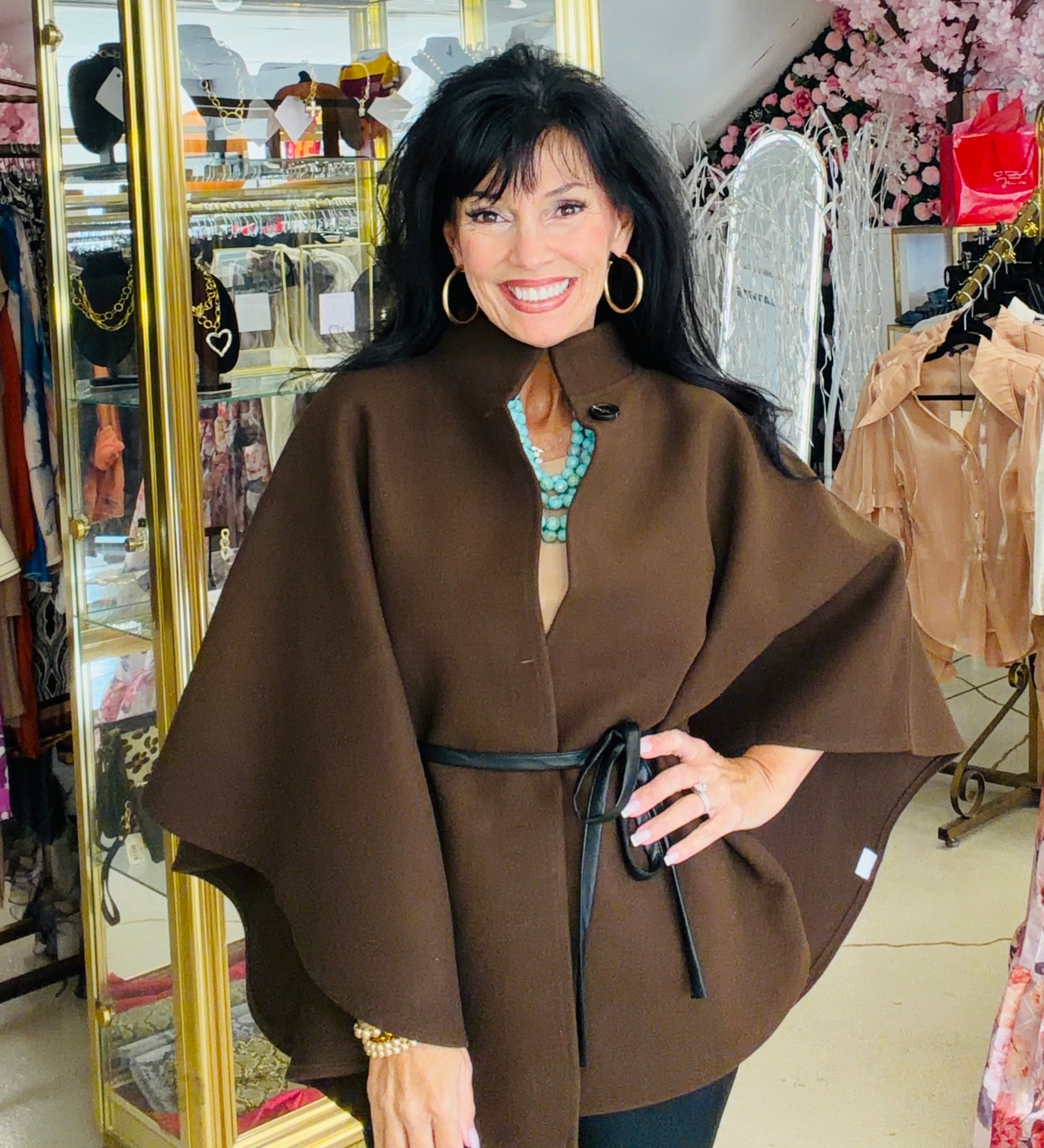 Make a statement in The Uptown Cape — where timeless elegance meets modern sophistication. This beautifully tailored cape features a sleek high collar, single-button neckline, and a subtle faux leather tie belt that cinches the waist just right. The flowy, structured silhouette adds instant polish to any outfit — from jeans and boots to dresses and heels. Effortless, elevated, and oh-so-stylish, it’s available in Espresso Brown and Classic Black for the perfect finish to your fall and winter looks.