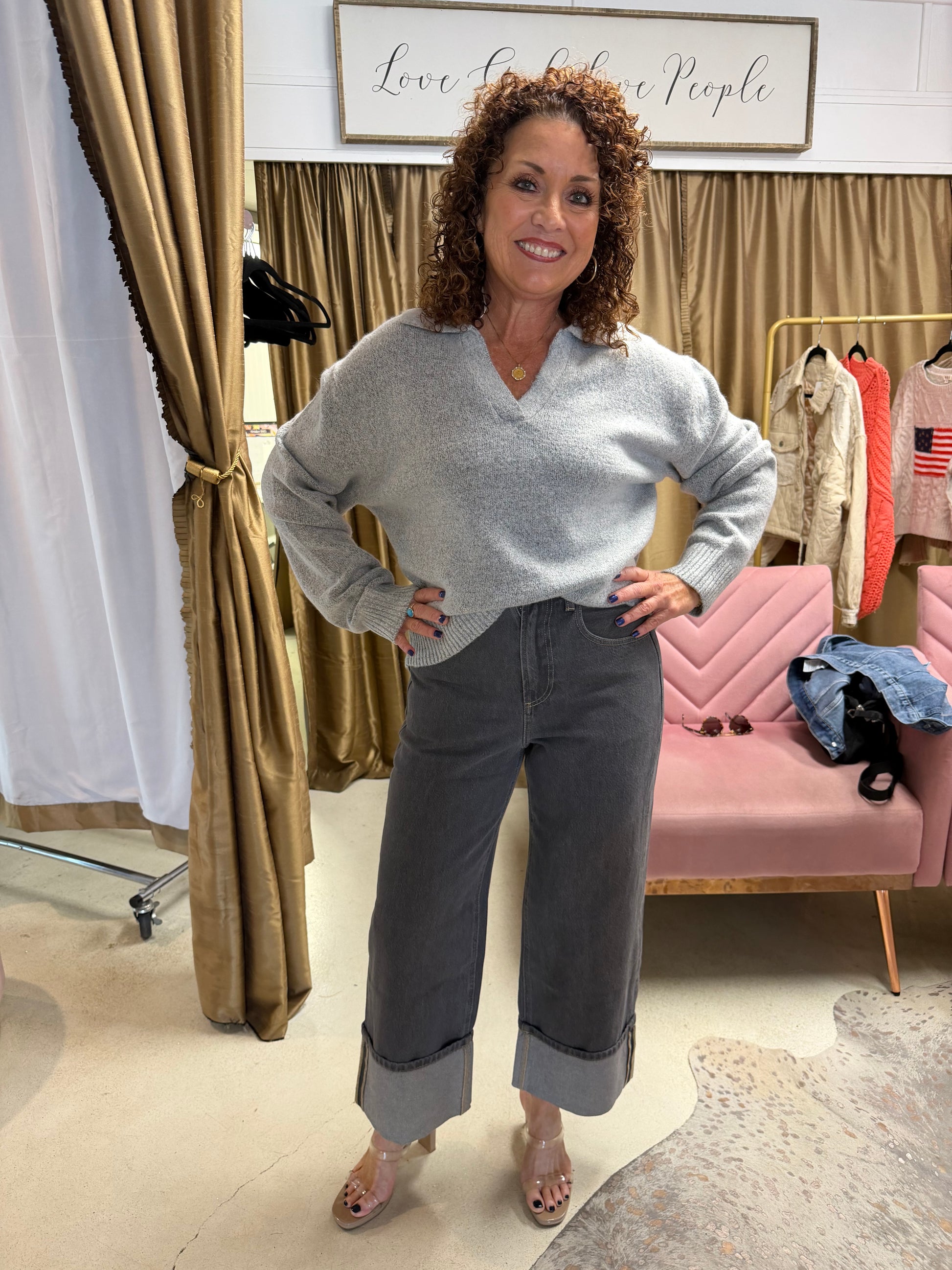Meet your new denim obsession — the Uptown Cuff Jeans. With their modern wide-leg silhouette, dramatic cuffed hem, and vintage-inspired washed black tone, these jeans bring effortless cool to any outfit. High-rise fit with a hint of stretch gives you that flattering, all-day comfort we all love.